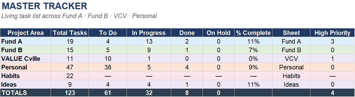 What came back surprised me. Not because it was magic. Because of the elegant simplicity in having a single Master Tracker which was encoded with a system I could build on.