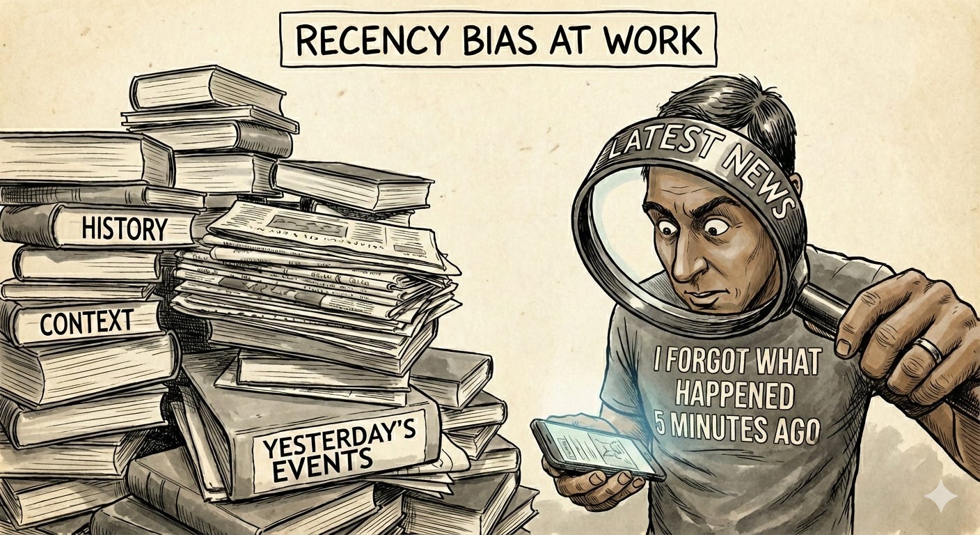 I have a particularly strong form of recency bias. I tend to run on the track of the most recent lesson learned - the last lesson, book, idea, or market move that felt insightful. But, my sense is that the discipline to stick with fundamentals is where the richest learning actually lives.
